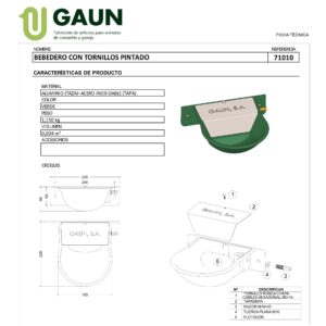 BEBEDERO ALUMINIO PINTADO CON TORNILLOS