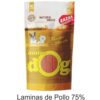 Snacks de cordero. Alimento complementario para su perro, muy rico en nutrientes. 100% natural. Con un alto contenido en proteína animal y con pocas grasas (Producto Light).Utilizar como un regalo o recompensa en cualquier momento, dentro de una dieta equilibrada.El perro debe ser supervisado en todo momento mientras se alimenta.Mantener en lugar fresco y seco, así como no exponer directamente a la luz solar.Dejar siempre agua dulce y fresca a disposición de su mascota.COMPOSICIÓN: Cordero 55%, Subproductos de cordero 15%, Pollo 10%, Fécula de patata 6,5%, Edulcurante Sorbitol 5%, Emulgente Glicerina 4,5%, Proteína vegetal 3,5%, Sal 0,4%, Aditivos: Conservante Sorbato Potásico 0,1% (E-202 ).COMPONENTES ANALÍTICOS: Proteína 30%, Contenido de grasa 5,5%, Ceniza bruta 5%, Fibra bruta 1,5%, Humedad 18%.