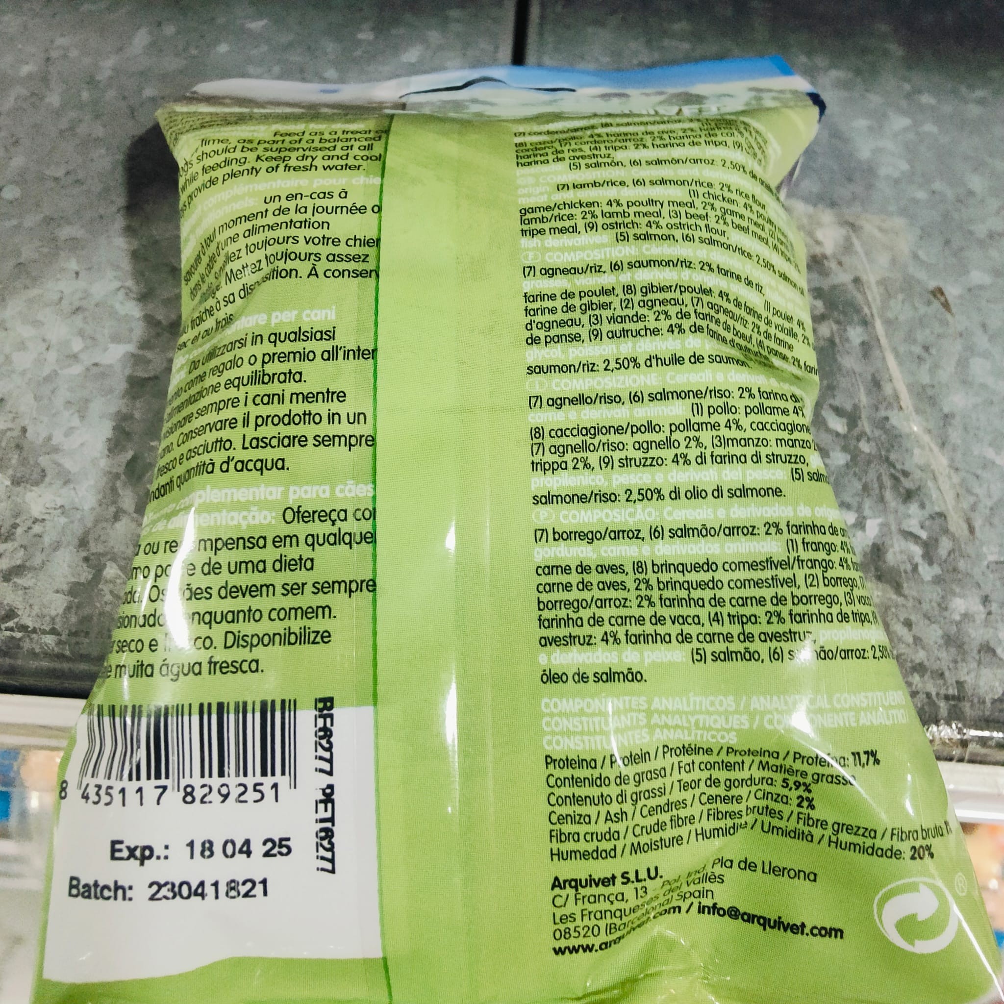 Los Soft Snacks son un excelente snack premium semi-húmedo para perros pequeños o medianos, puede utilizarlo como snack de bienvenida o como recompensa ideal durante el entrenamiento. Siempre como parte de una dieta equilibrada. Los perros deben estar bajo supervisión mientras comen. Mantener en lugar fresco y seco y suministrar siempre agua en abundancia.INGREDIENTES: Cereales y derivados de origen vegetal (2% harina de arroz), aceites y grasas, carne y derivados animales (harinas de cordero, buey, caza y pollo), propilenglicol, pescado y derivados de pescado (2,5% aceite de salmón).ADITIVOS NUTRICIONALES: 1.200 mg/kg Hierro (Óxido de hierro III).COMPONENTES ANALÍTICOS: Proteina (Min) 11,7%, Grasa (Min) 5,9%, Ceniza (Max) 2%, Fibra (Min) 1%, Humedad (Min) 18%.Producto de fácil digestión y muy saludable, su sabor y aroma encanta a todos los perros.