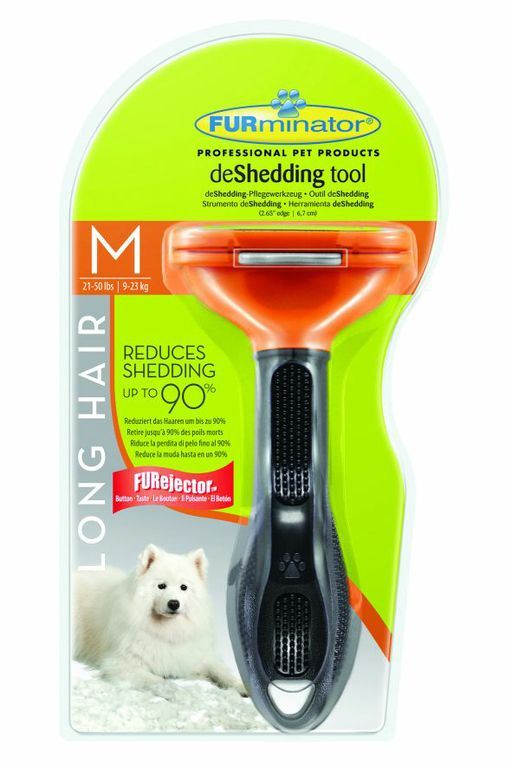 El cepillo Fur. reduce la muda hasta un 90% diseñado para perros de 9 a 23 kg pe lo largo. El borde de acero inoxidable penetra por debajo de la capa superior d el pelaje largo del perro para eliminar el subpelo y el pelo suelto de forma to talmente segura.
