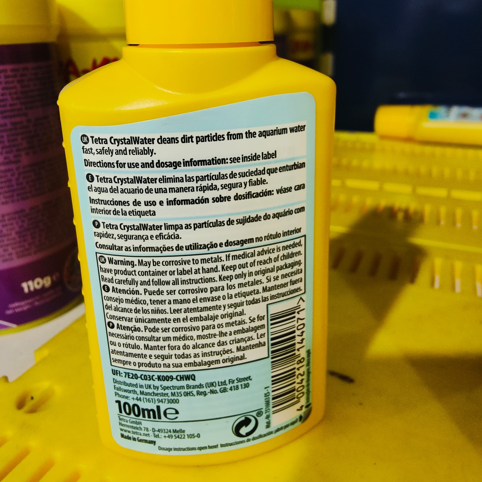Para agua de acuario cirstalina – eliminación segura y rápida de los enturbiamientos. -rápida aclaración del agua de acuario eliminando los enturbiamientos de todo tipo-aglutina las partículas en suspensión que enturbian el agua y que el filtro del acuario filtra después del agua-resultados visibles ya después de 2 – 3 horas-puede aplicarse con todos los valores KH – también con valores KH bajos-la fórmula contiene sales orgánicas de hierro y aluminio lo que permite una amplia eficacia-peces y plantas se encuentran más a gusto-para todos los acuarios de agua dulce