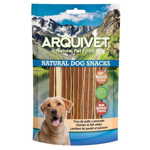 SNACK TIRAS DE POLLO Y PESCADO 100 gr. Arquivet