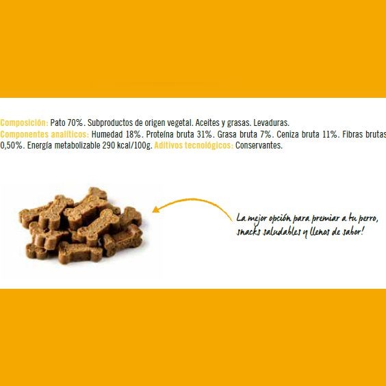 Sensistive Soft ChewsAll Dogs – 70% Duck (pato)SNACKS FUNCIONALES PARA PERROS DE CUALQUIER RAZA, IDEALES PARA PERROS CON PIELES O ESTO´MAGOS SENSIBLESComposición:Carnes y subproductos animales (Pato 70%). Subproductos de origen vegetal. Aceites y grasas. Levaduras.Componentes analíticos:Humedad 18%. Protei´na bruta 31%. Grasa bruta 7%. Ceniza bruta 11%. Fibras brutas 0,50%. Energi´a metabolizable 290 kcal/100g.Aditivos – Aditivos Tecnológicos:Conservantes.Formatos:· 150 gr.