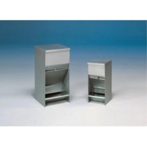 Tolvas medianas para perros Estas tolvas están hechas con chapa galvanizada para evitar que se oxiden si las dejas al aire libre. Están provistas de un regulador de pienso y tapa superior e inferior que facilitan su limpieza y desinfección cada vez que repones el alimento.Son ideales para perros que viven en fincas de fin de seDimensiones: 200 x 220 x 470 mm.Unidades por caja: 2Comedero para perros fabricado en chapa galvanizada.
